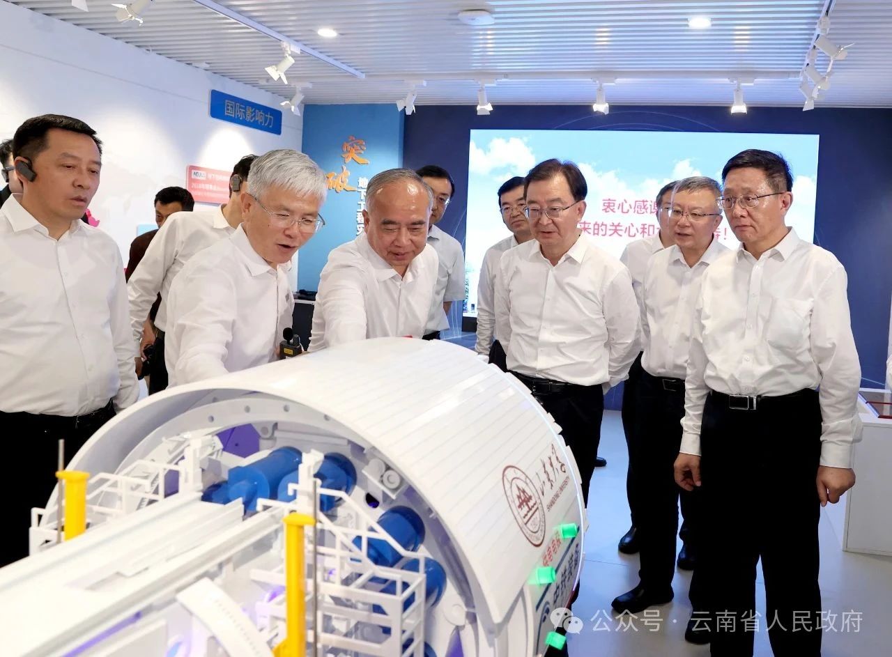 △ 云南省黨政代表團在山東大學(xué)考察隧道工程災(zāi)變防控前沿技術(shù)在滇應(yīng)用情況。
