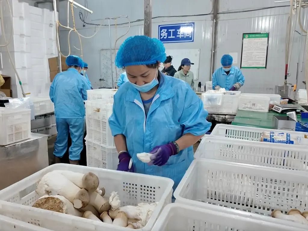 蓬勃發(fā)展的食用菌產(chǎn)業(yè)還催生出助農(nóng)增收的聯(lián)農(nóng)帶農(nóng)機制。陸良爨鄉(xiāng)綠圓菇業(yè)有限公司通過流轉(zhuǎn)土地,帶動周邊600多戶農(nóng)戶種植食用菌,每戶年均增收1.5萬元?!懊總€月打包分揀食用菌能有4000多元的收入,我很滿意?!奔易」S附近的農(nóng)戶朱麗仙說,除了土地租金,周圍農(nóng)戶還可以到車間里務(wù)工,實現(xiàn)家門口就業(yè)。