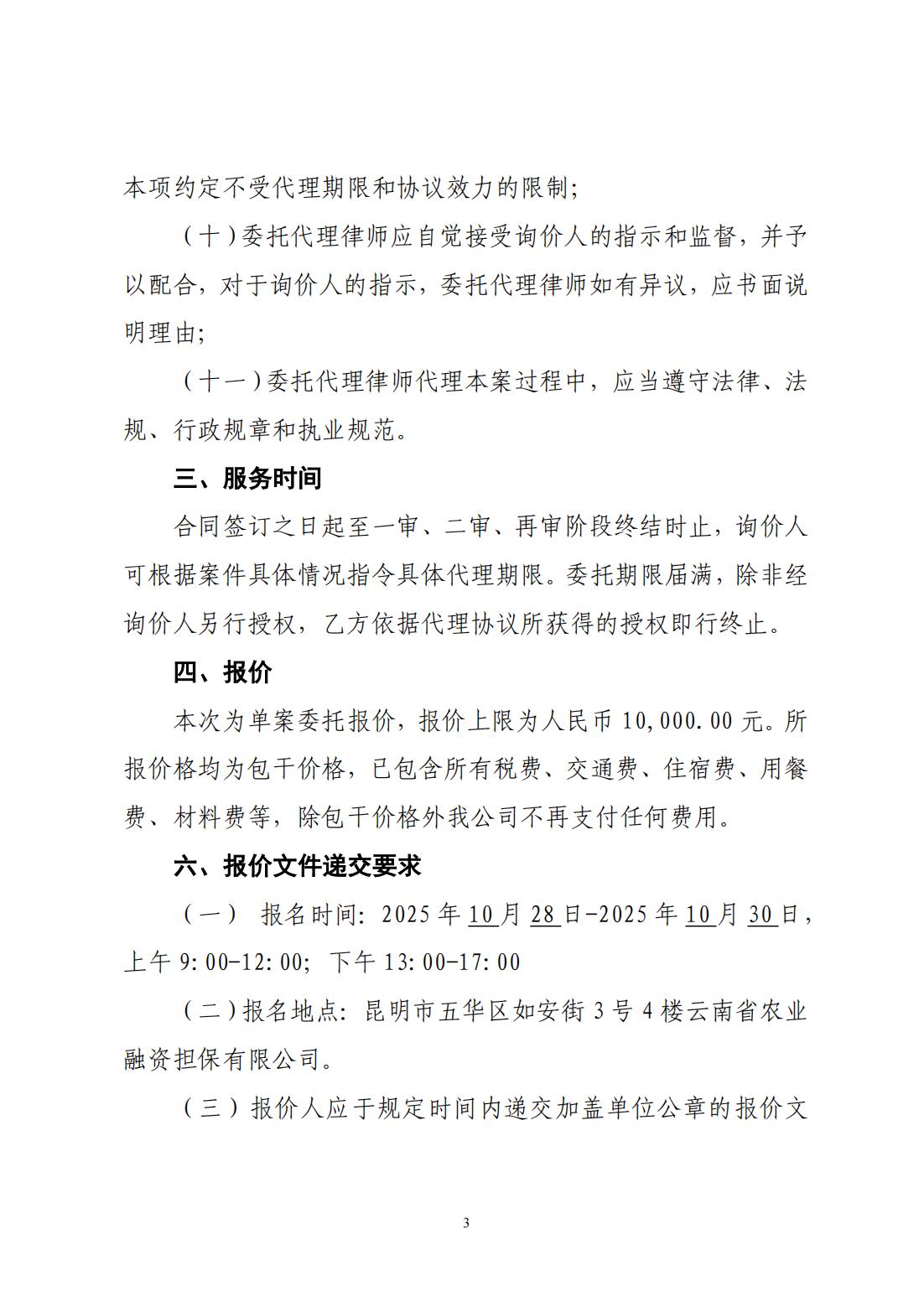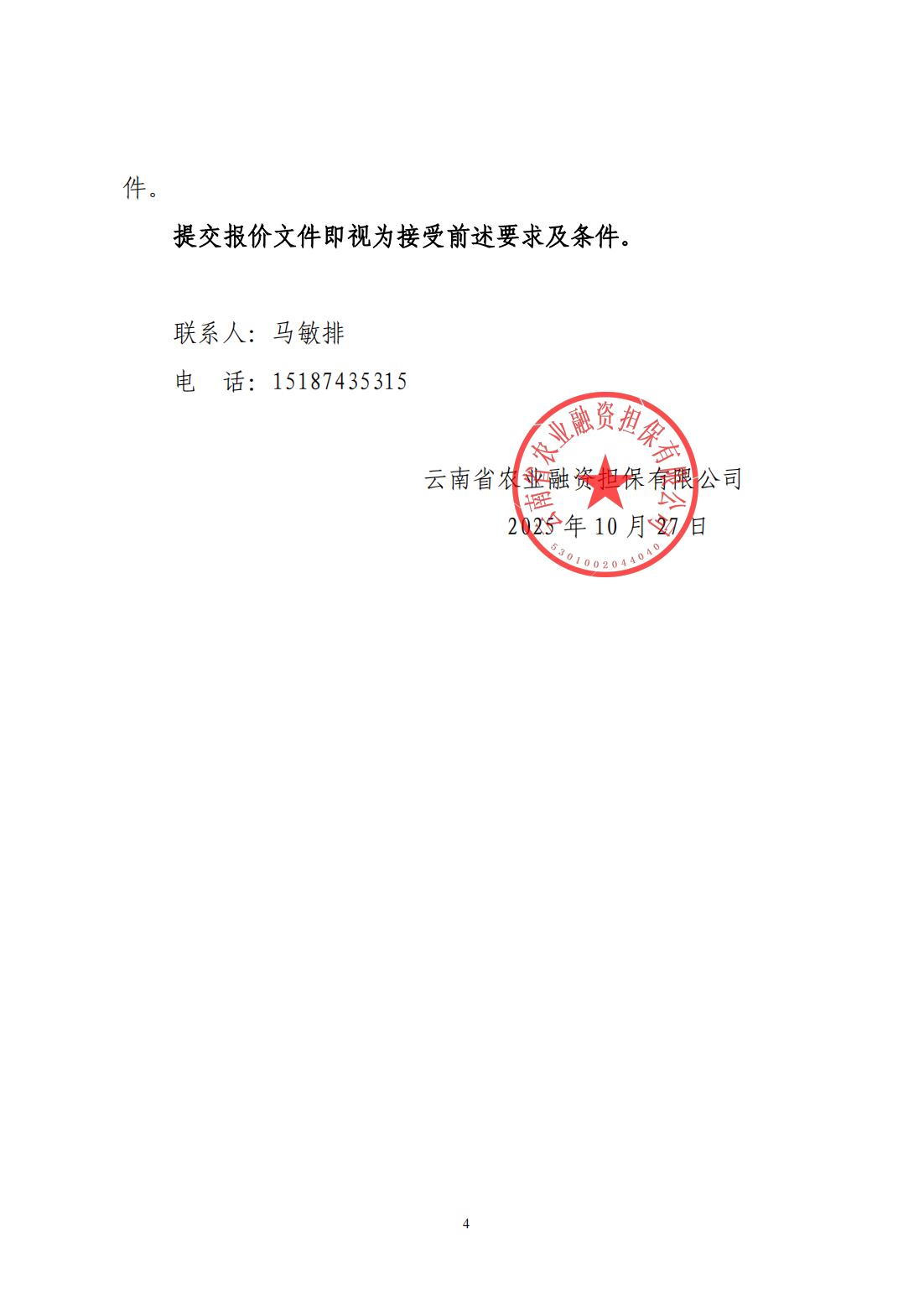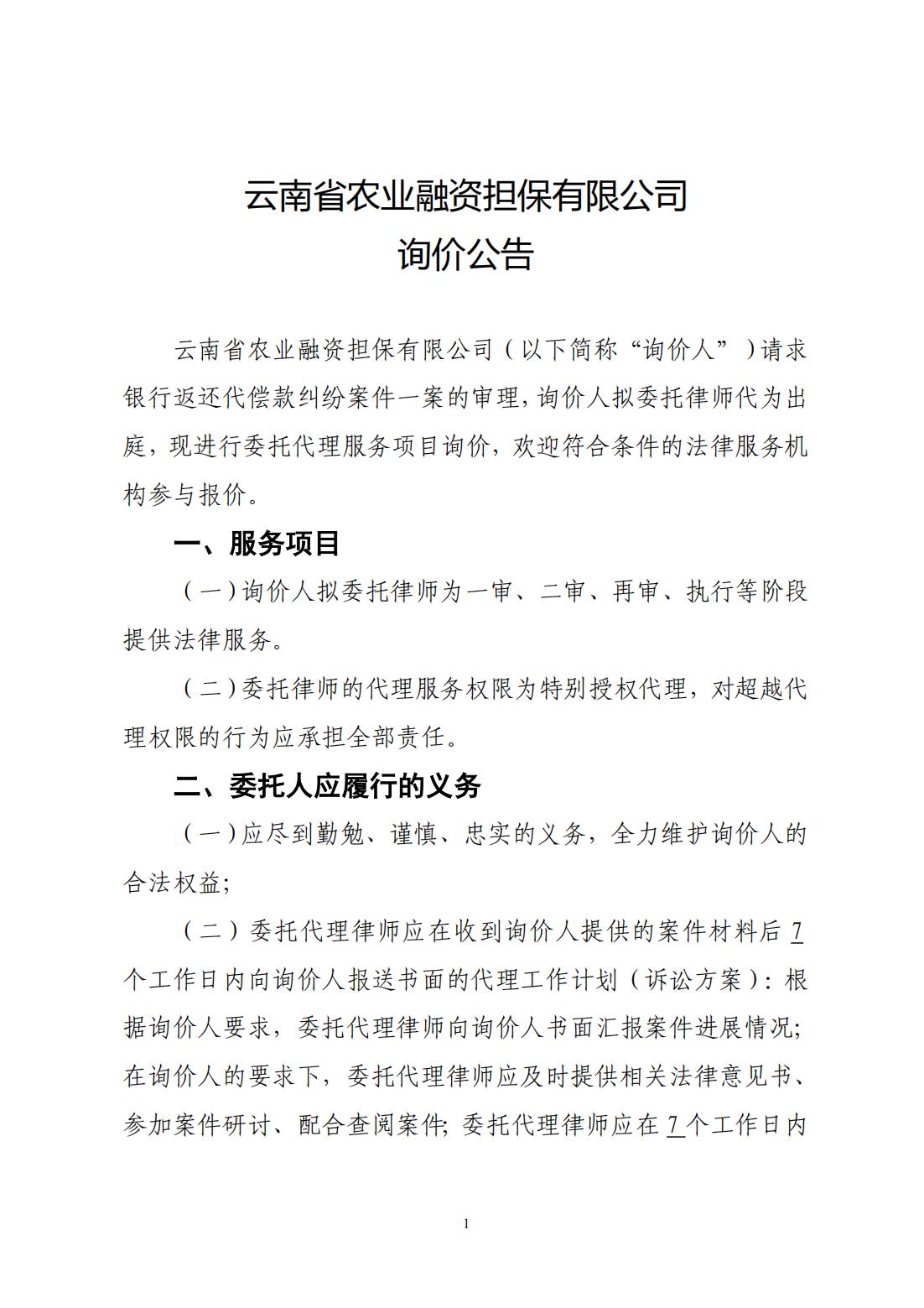 云南省農(nóng)業(yè)融資擔(dān)保有限公司詢(xún)價(jià)公告