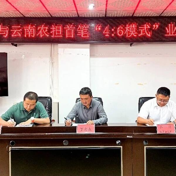 云南農(nóng)擔(dān)公司與中國(guó)農(nóng)業(yè)銀行云南省分行簽署“4:6產(chǎn)品模式”協(xié)議。